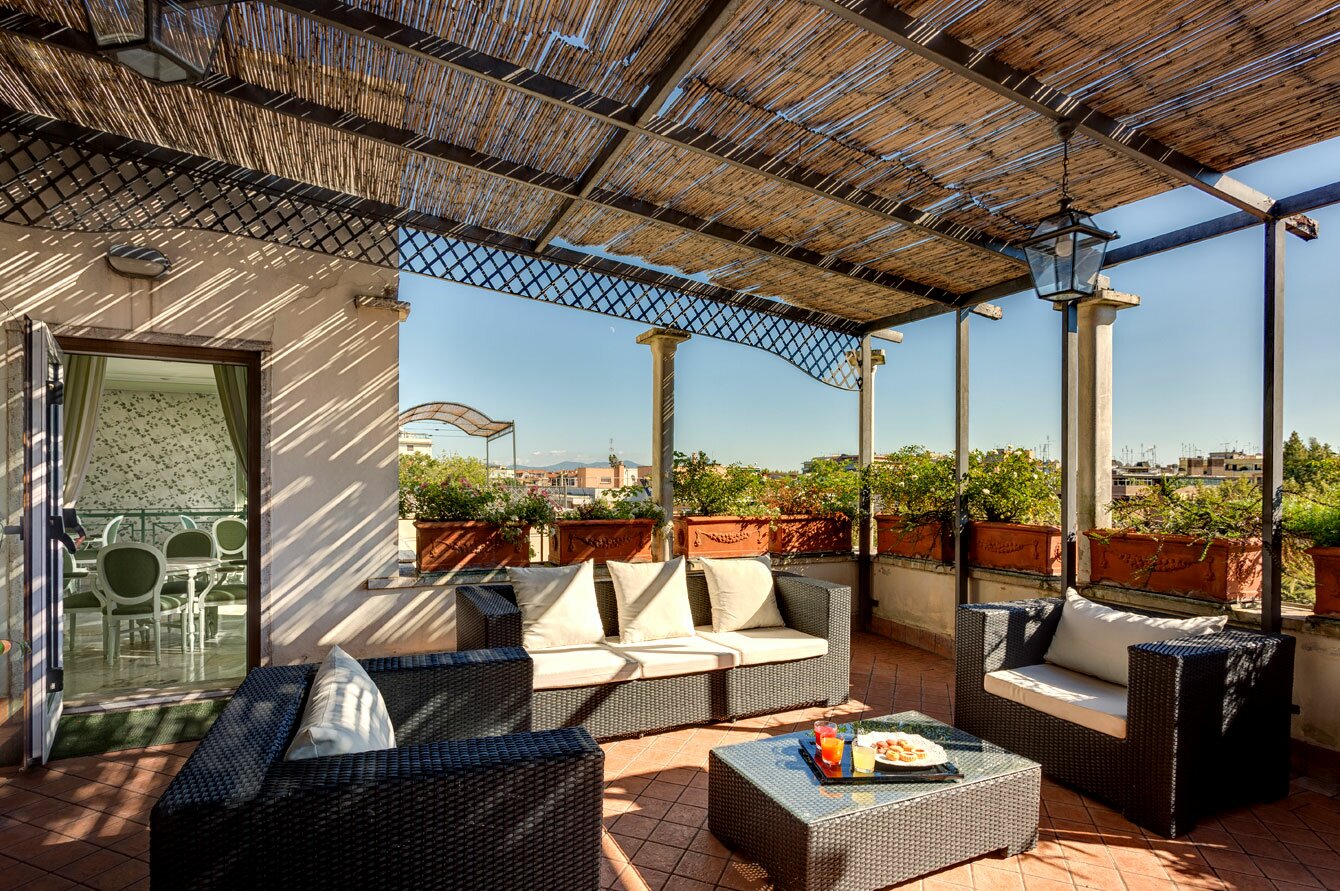 L’Hotel Clodio offre la connessione Wi-Fi veloce in tutte le camere, e vanta anche un eccellente ristorante interno e una favolosa terrazza panoramica con vista sui tetti di Roma e il bar: il luogo preferito dai nostri ospiti per un aperitivo prima di cena.